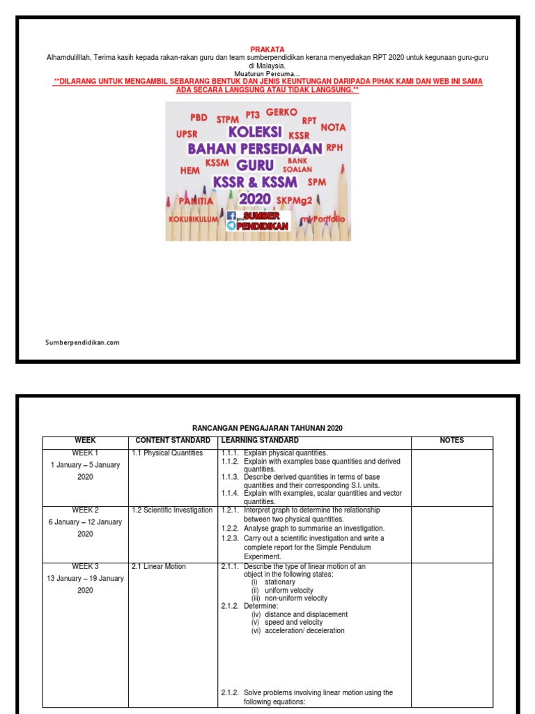 Rancangan yang berbentuk jadual ini amat berguna kepada pihak tersebut kerana ia dapat memudahkan persediaan Pengajaran dan Pembelajaran bagi tahun tersebut. RPT Kimia Tingkatan 5 2020. Link Koleksi RPH KSSR 2020 Tahun 1 hingga Tahun 6 atau pautan download media atau bahan bantu mengajar yang berbentuk softcopy seperti gambar video soalan pekeliling bahan bantu mengajar dan media lainnya di blog sksungaitong ini adalah ulangsiar dari beberapa laman blog dan website pendidikan di Malaysia.
